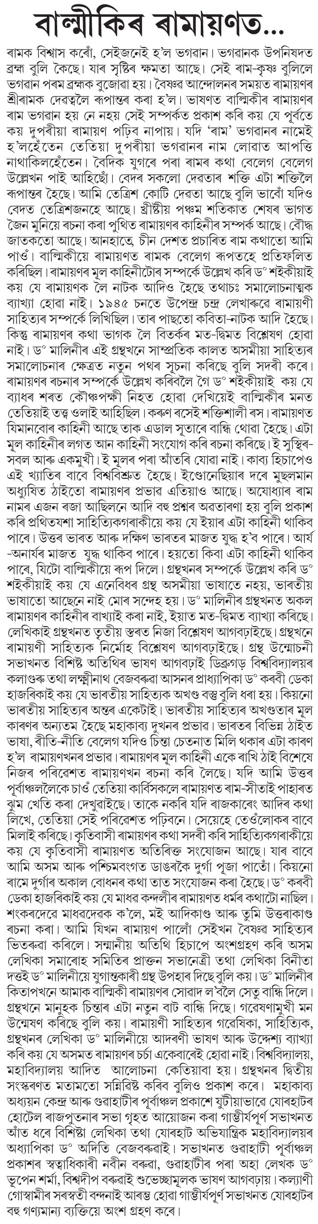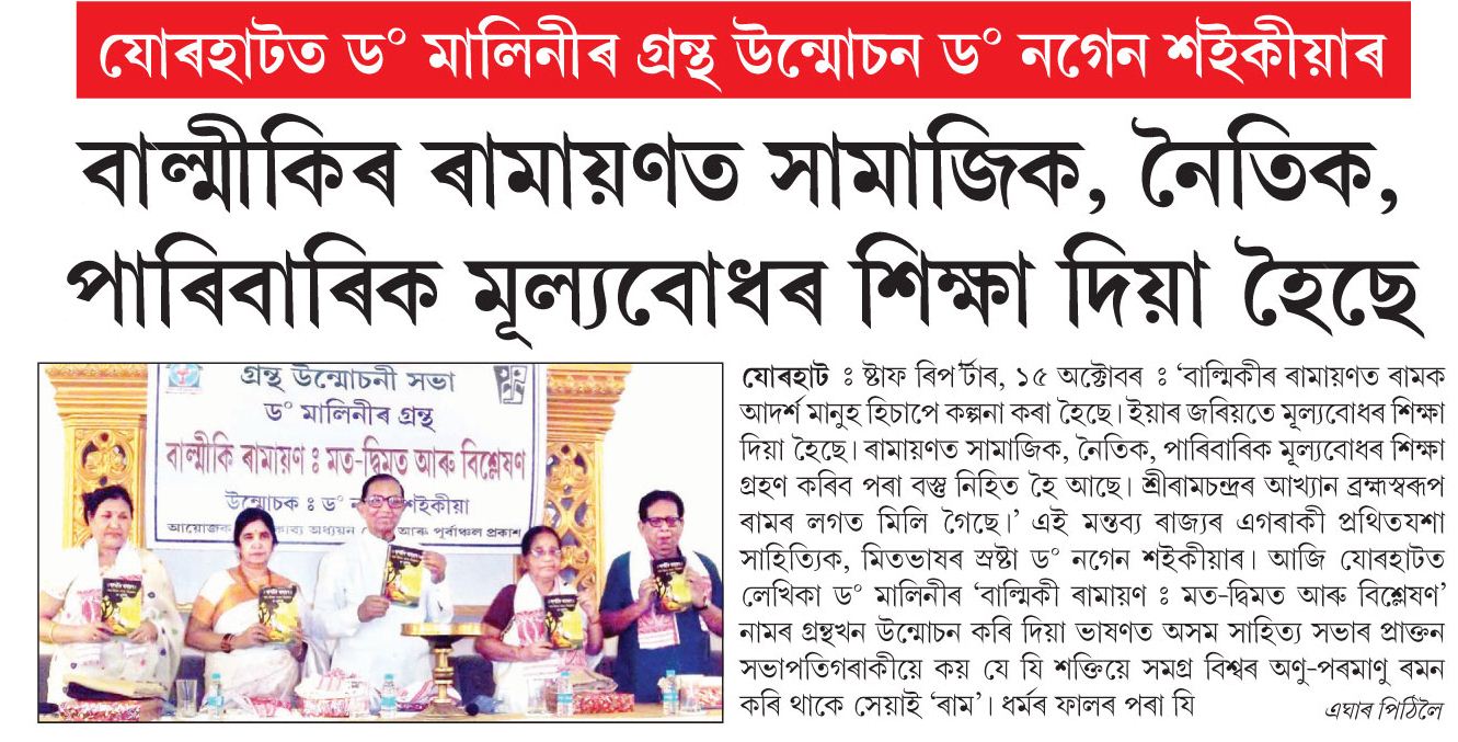 (Views, conflict and analysis on Valmiki Ramayana) is released on 15 th October,2017 in Jorhat.